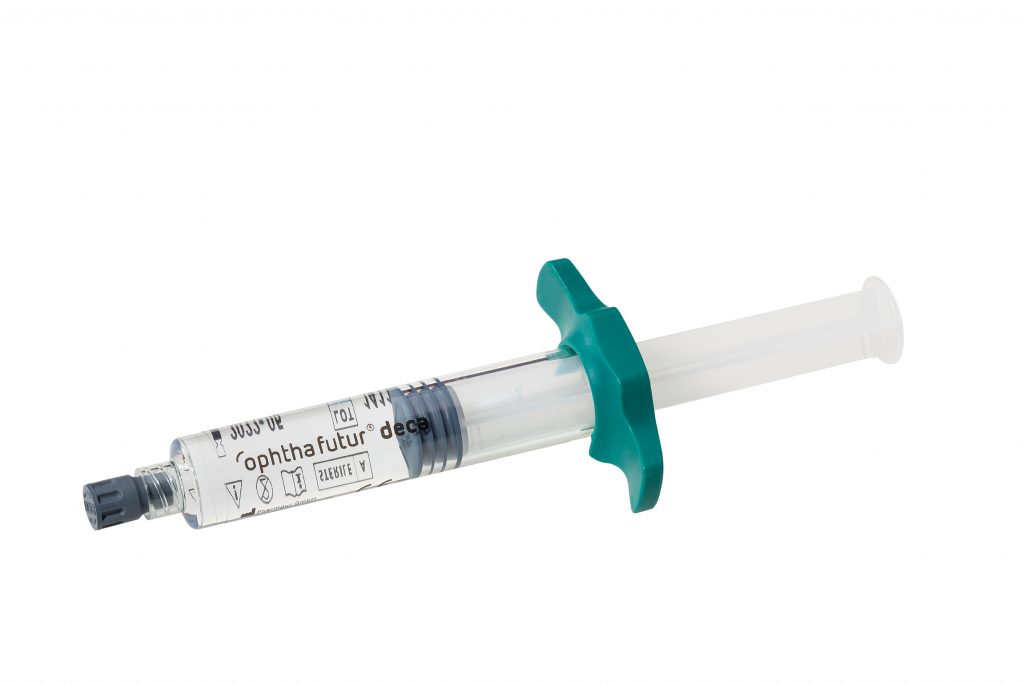 As PFCL filled glass syringes add considerable weight, which might be uncomfortable for some surgeons, and PFCL can possibly interact with the glass syringe lubricants, we use Cyclo-Olefin-Copolymers (COC) syringes